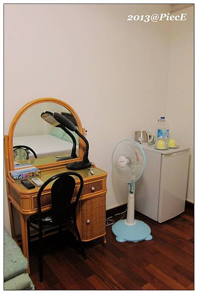 除了普通會有的電視、床鋪、冰箱、電風扇、冷氣、梳妝台、掛衣處外,