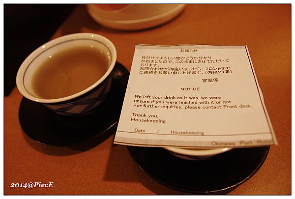 「因為我們不確定您是否已經用畢,故仍保留您杯內的飲品。如果有需要進一步的處理,請和櫃台聯繫。」