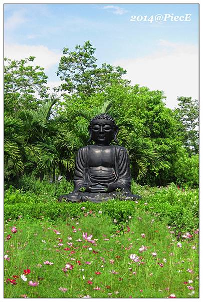 不遠處,就會看到一尊Q版的「八卦山大佛」,在波斯菊群中。