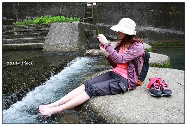 脫下鞋子,用腳丫子感受,溪水的冰涼溫度。