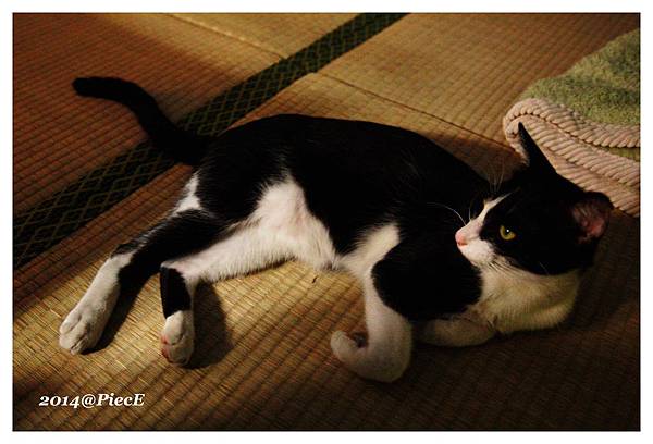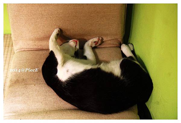 貓兒醒來,還撒嬌的窩在皮斯身邊,陪伴一個人的皮斯。