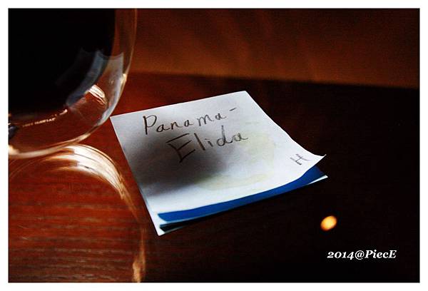 最上面的那張,寫著皮斯今天點的咖啡品項(Panama-Elida,150大洋)。