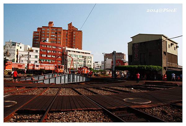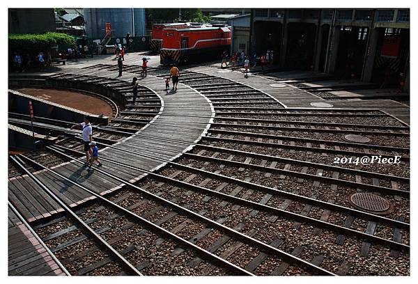 如扇形的鐵軌透過轉盤移動,火車頭因此轉動而進出車站。