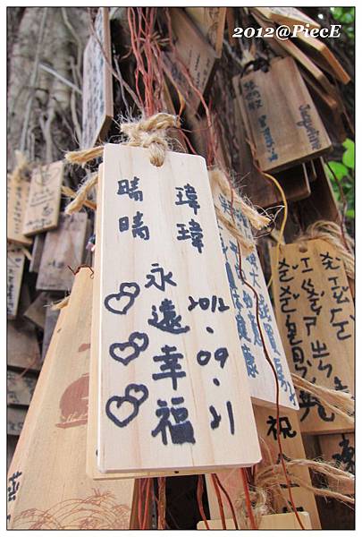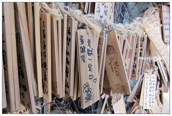 掛滿許多祈福小木片,