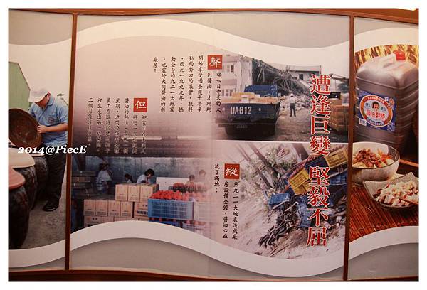 仍在震後一個禮拜,在臨時搭建的布棚中生產出震後第一瓶醬油。