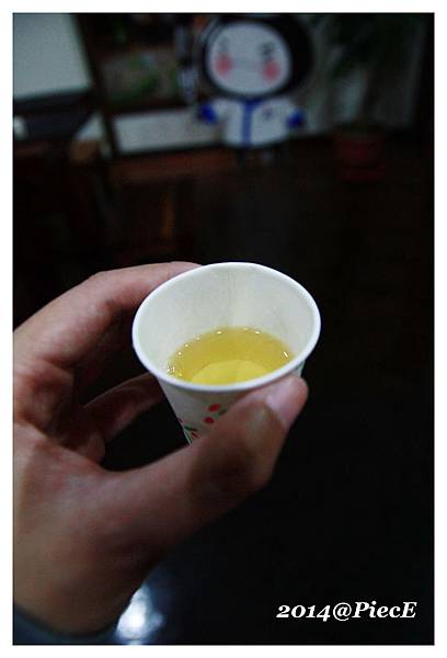 導覽人員會先送上一杯白醬油調味的雞湯,