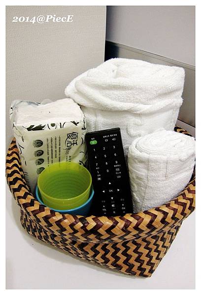 還放有毛巾、衛生紙、漱口杯、水杯與遙控器。