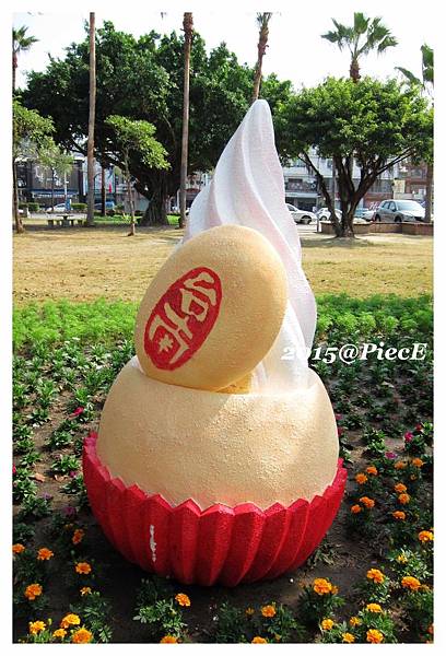 搭配上旁邊的花朵與台南的藍天,
