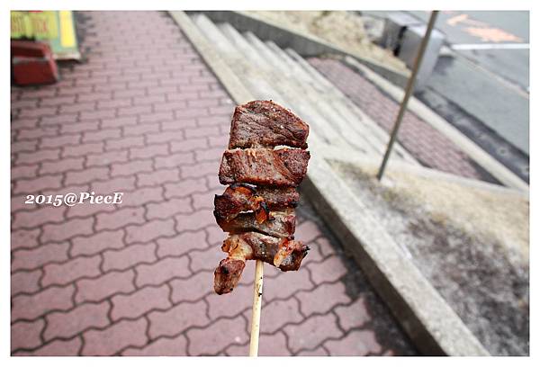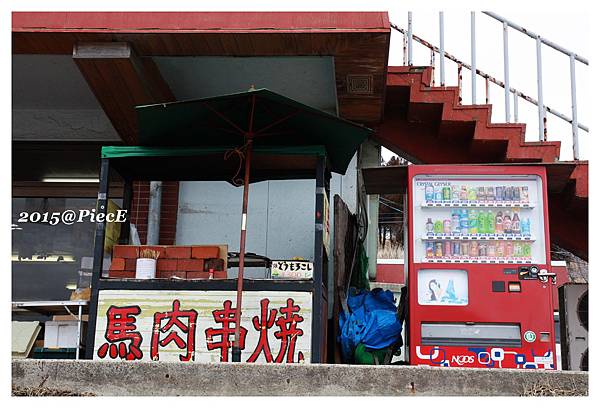 剛好看到有小攤販在賣「馬肉」(小串150円,大串300円)。