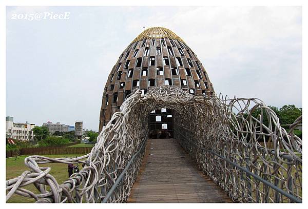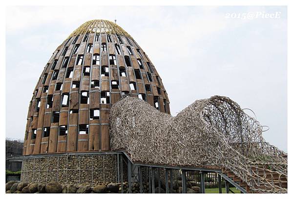 只是台東國際地標主體仍是使用藤編,而森林之歌是使用木頭。