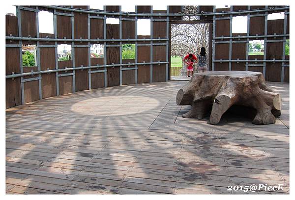 運用嘉義縣林務局所提供的漂流木、廢棄的阿里山鐵路鐵軌、黃藤以及石頭,