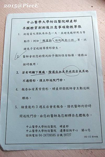 中山醫的羊穿過程是不能拍照、家人也不能陪同進入,