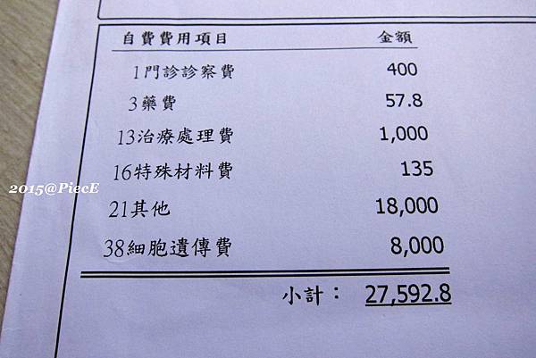 最後附上我們在中山醫檢查的費用,