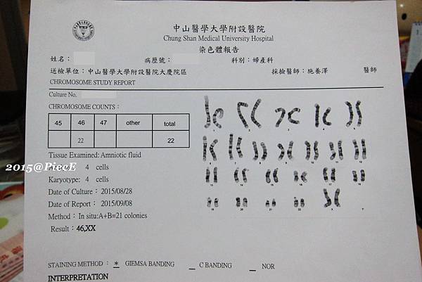 所以我們決定做羊膜穿刺+羊水晶片(進一步染色體變異疾病的檢查)。