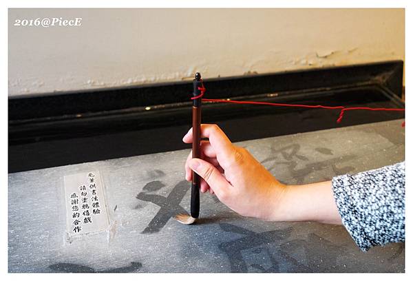 而這裡也有讓人沾水試寫毛筆字的地方,