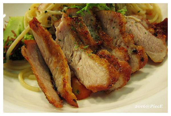 皮斯覺得他的松阪豬吃起來挺有嚼勁,