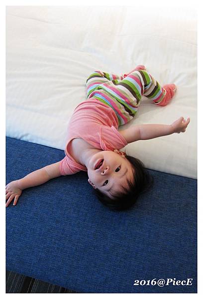而肚肚一看到這張大床就一直在上面爬來爬去,