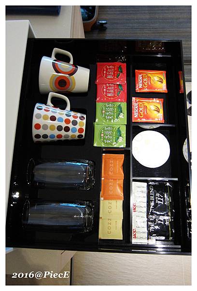 冰箱裡面的飲料(三罐汽水)、外面的迎賓水果、茶包等,均為免費,可以自行取用。