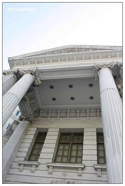 上方為古典式圓頂,下方建築讓人一眼就看到的是白長的大石柱。
