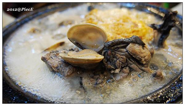 他燒酒雞裡面最主要的內容物為雞肉與蛤蜊,湯頭也很棒。