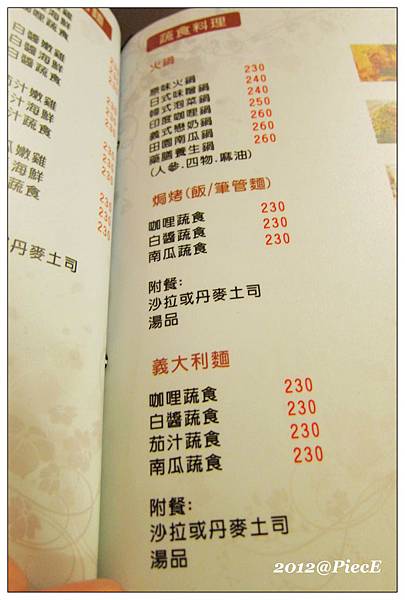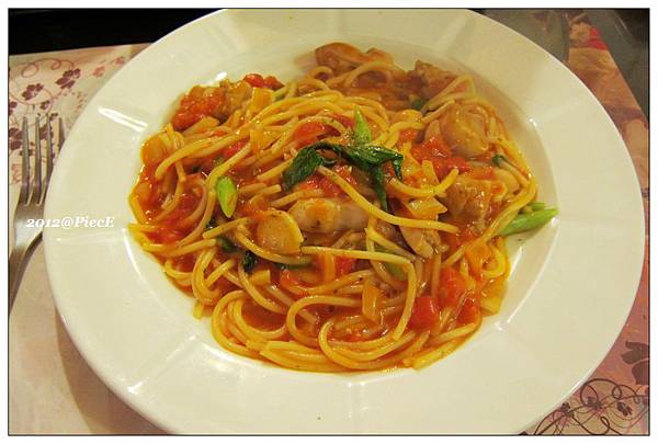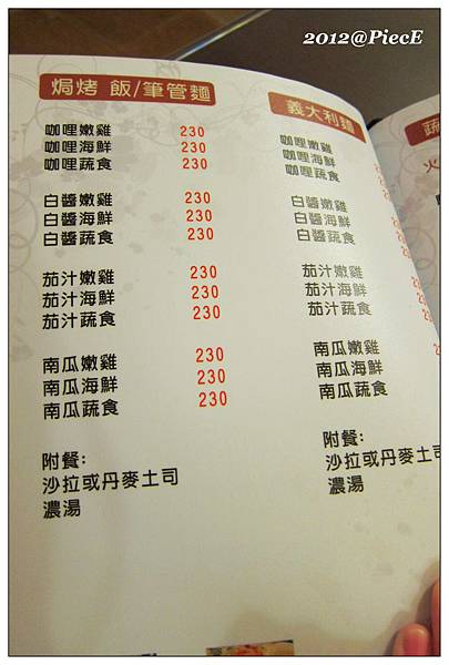 我點的是「茄汁嫩雞義大利麵」(含沙拉或丹麥吐司、湯品、飲料、甜點,共230大洋)