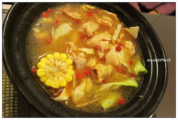 麻油養生火鍋湯頭喝起來蠻香的,有甜甜的枸杞味。