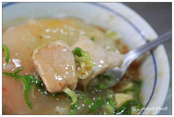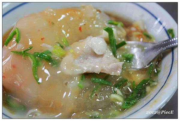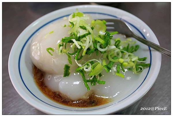 他的肉圓上面加了許多蔥,就外觀看起來蠻可口的。
