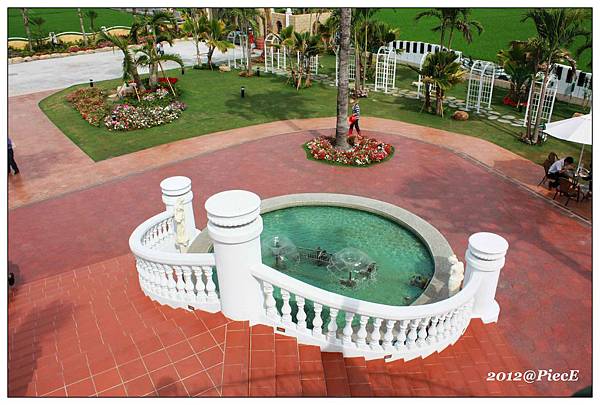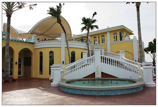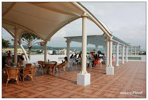 遮陽台下放了許多桌椅供顧客吹風賞景,