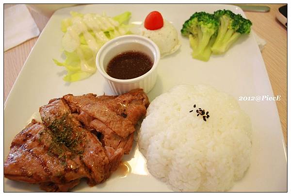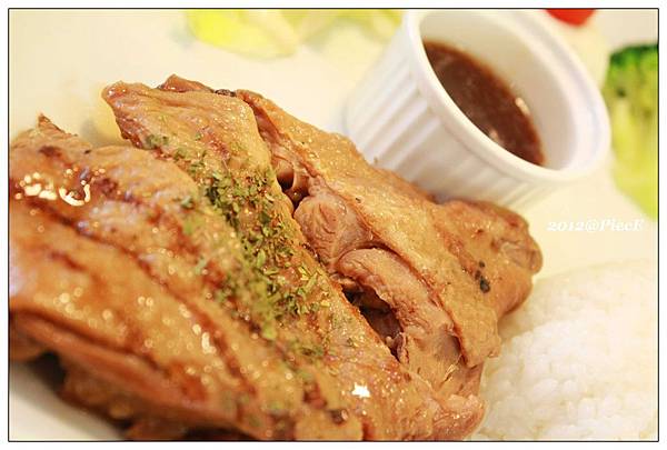 朋友點的是「照燒去骨雞腿排飯」(230大洋)。