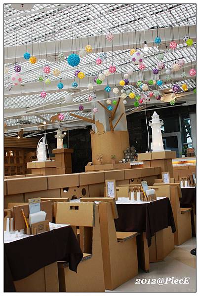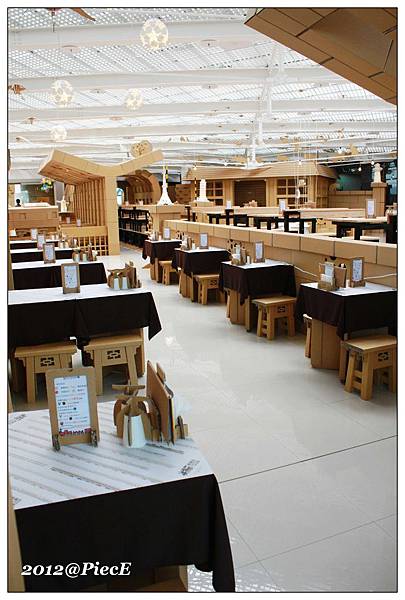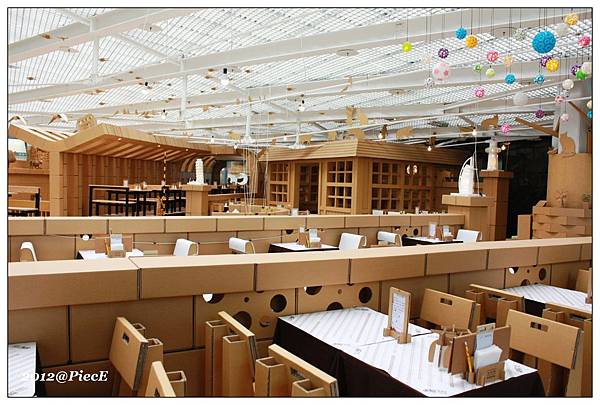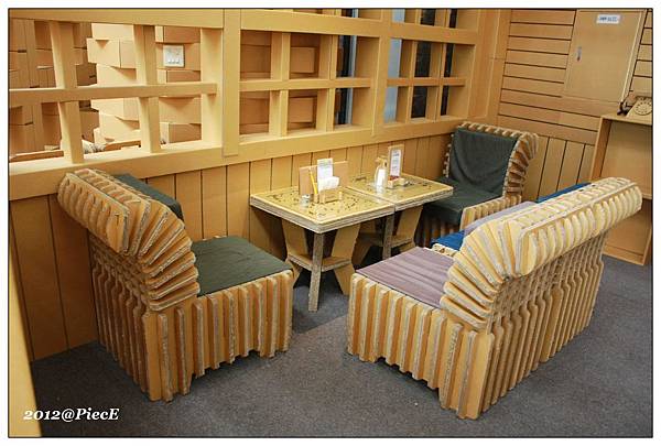 想當然爾,裡面的許多餐具跟桌椅都是用瓦楞紙做成的。