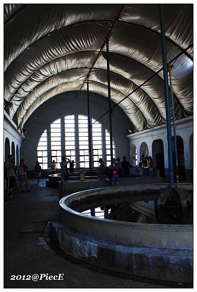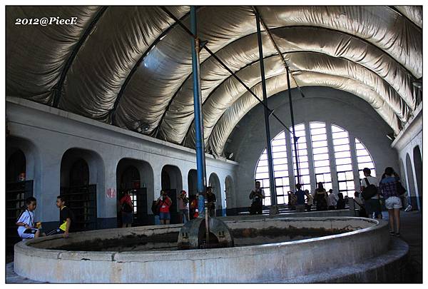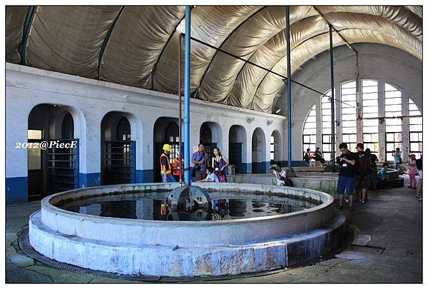 圓形大澡堂直徑約5公尺,熱水靠鍋爐蒸氣加熱,
