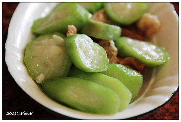 他的絲瓜跟我一般印中炒的軟軟的絲瓜料理不同,