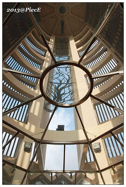 而塔頂斜面設有一巨型嘉義市花-艷紫荊。