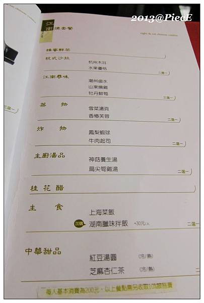 套餐內容還包括:杭州沙拉、江南尋味、蒸物、炸物、主廚湯品、桂花醋(可無限續)、中華甜品。
