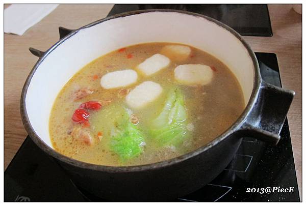 經過服務人員的調味,並加進年糕、菜捲之後,